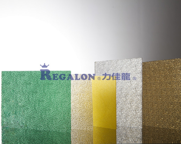 力佳龙®颗粒实心板是聚碳酸酯实心板中的一个分支,有磨砂纹,钻石纹,棱镜纹等装饰性和功能性的纹理可供选择。除具有聚碳酸酯实心板材优异的性能之外,它特殊的纹理结构使其在室内装修或隔断,建筑采光,广告照明等领域有着广泛的应用。